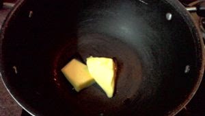 - In a kadai add butter, cinnamon, onion paste and saute it well.